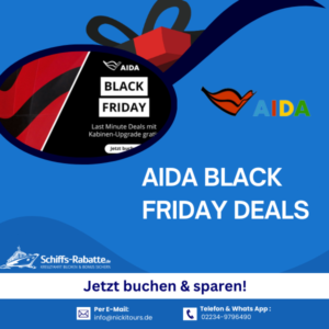 Es ist wieder soweit: unser Black Friday bei AIDA startet heute! Sichere dir Last-Minute-Deals mit gratis Kabinen-Upgrade – nur für kurze Zeit! ⏳