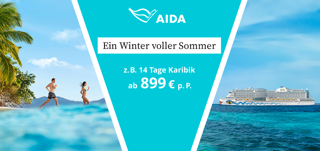 Machen Sie Ihre Urlaubsträume wahr und reisen FÜR PAARE & FAMILIEN Sie der Sonne hinterher! Der Winter wird sommerlich warm – mit AIDA! Denn statt kaltnassem Wetter warten spektakuläre Sommererlebnisse auf Sie. Erleben Sie mit uns unendlich lange, weiße Sandstrände oder türkisblaues Meer und entdecken Sie die schönsten Orte auf den Kanaren, im Orient, im indischen Ozean oder in der Karibik.