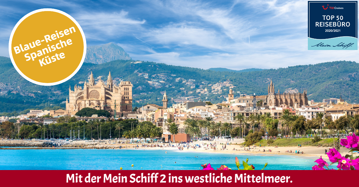 Ab dem 10. Juni 2021 geht es für die Mein Schiff 2 ins westliche Mittelmeer. Neben der Transreise von Gran Canaria bis Mallorca, geht es dann ab/bis Palma de Mallorca auf zwei unterschiedlichen 7-tägigen Routen zu den schönsten Häfen und Landschaften der spanischen Mittelmeer- und Atlantik-Küste. Auf dem Fahrplan stehen Metropolen wie Barcelona & Valencia, die andalusischen Hafenstädte Málaga & Cádiz oder auch Alicante & Cartagena. Exklusiv organisierte Landgänge ermöglichen es den Gästen, Land und Leute kennenzulernen.