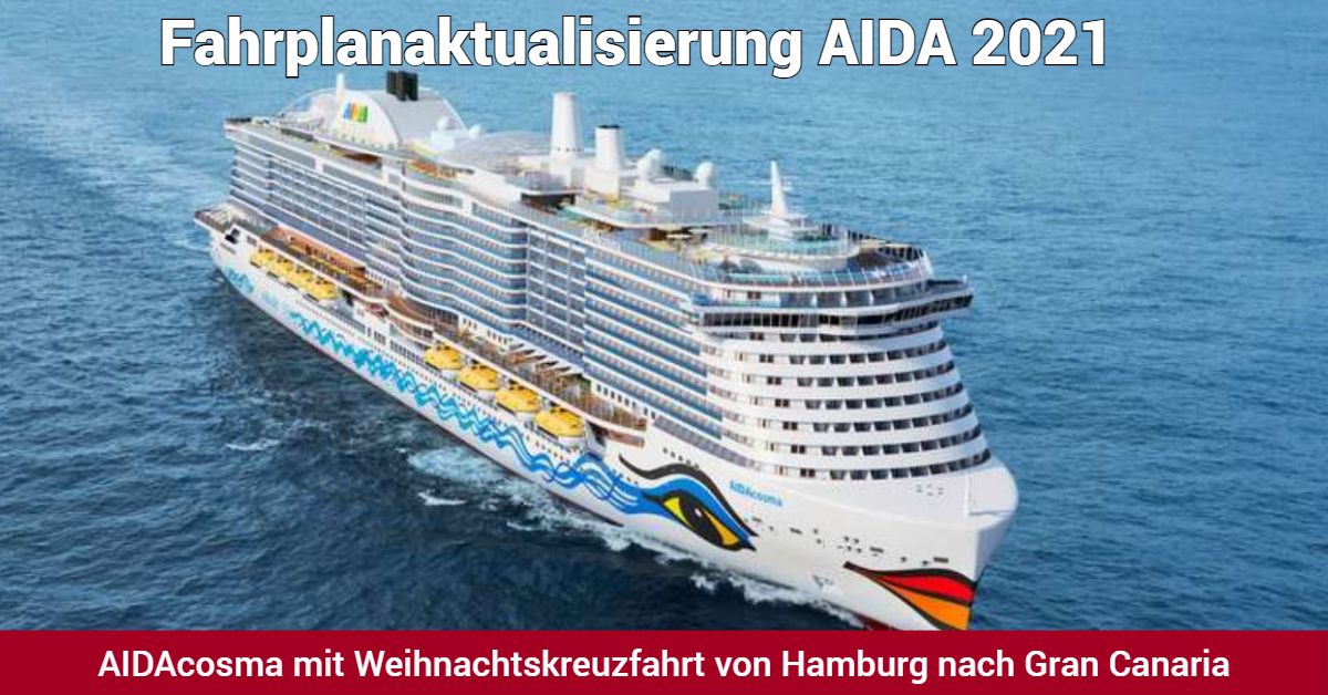 im Dezember 2021 heißt es Leinen los für AIDAcosma. Mit unserem neuesten Schiff können Sie in der Premierensaison bis April 2022 7-tägige Kreuzfahrten rund um die Kanarischen Inseln erleben. Zuvor erwartet Sie eine ganz besondere Kreuzfahrt über Weihnachten und Silvester: Am 22. Dezember startet AIDAcosma zu einer Transreise von Hamburg nach Gran Canaria, die ab 28. Mai 2021 buchbar ist.