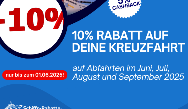 Nur vom 28.05. bis 01.06.2025: Sichere dir 10 % Rabatt auf viele Sommer-Kreuzfahrten in Nordeuropa & im Mittelmeer – mit Abfahrten von Juni bis September 2025!