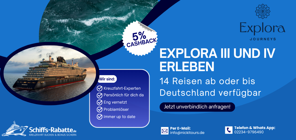 Mit Explora Journeys startet eine neue Generation der Luxuskreuzfahrt. Für die kommenden Saisons stehen besondere Reisen zur Auswahl, die mit den neuen Schiffen Explora III und Explora IV durchgeführt werden. 🌍